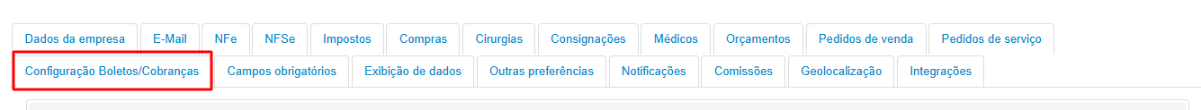 OBS: Caso a marcação na preferência da empresa esteja como "Usar apenas a Conta/convênio do cliente ou a padrão na geração dos boletos?" , é necessário vincular a conta no botão Configuração Boletos/Cobranças: