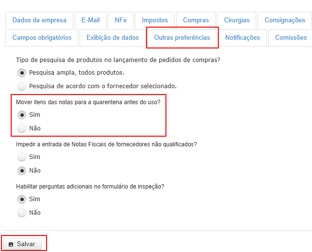 Outras preferências > Mover itens das notas para a quarentena antes do uso? Clique em Sim, em seguida clique em Salvar.