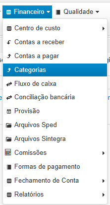 Após isso, efetue o logout do sistema e faça novo login. Com essa nova sessão, estará disponível as categorias em menu Financeiro.