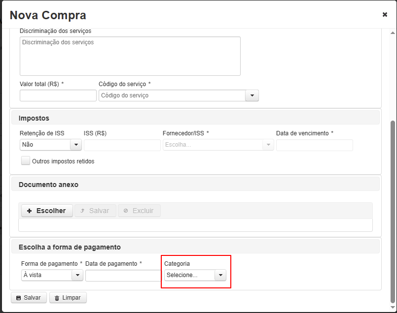 Quando possuir uma Entrada de serviços de rebates, lance-a em menu Compras > Serviços.