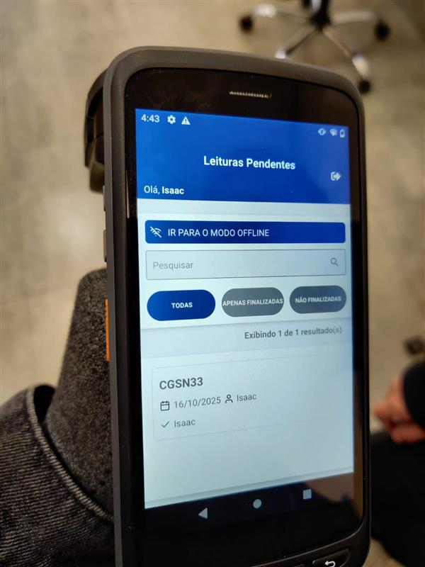 Botão IR PARA MODO OFFLINE: Nessa opção é possível realizar a leitura e posteriormente importar os dados após acessar uma rede de internet.