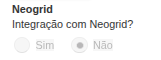 - Acesse a aba "Integrações" e selecione SIM para 'Integração com Neogrid?';