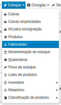 - Após esta etapa basta acessar o cadastro do Fabricante em Estoque > Fabricante;